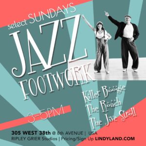https://youtu.be/3JEcGmpcQVs?si=sN82Rd5fCBqp6yh3 https://youtu.be/W_U6biSECc0?si=QwZ8CmObOuWhVsTM REGISTER HERE (Must have at least 5 sign ups to run. So Call to confirm we’re running 646-233-3338 JAZZ FOOTWORK SUNDAY FEB 23 3-5PM The Killer Boogie & The Roach 305 WEST 38th Street | corner of 8th Avenue | NYC American Swing Dance Champion Paolo will lead these Jazz Routines and go thru the patterns step by step for beginners to advanced. It’s all in preparation of the upcoming mega weekend Rock That Swing in Munich whee these and…